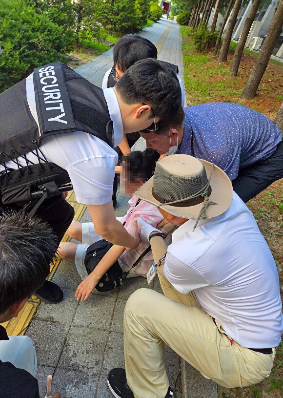 주차안내 근무자가 이를 발견하고 즉시 방호팀에 상황을 알렸고, 윤영서·백승훈 방호원이 의식과 상태를 확인한 뒤 휠체어를 이용해 응급실로 옮겼다.