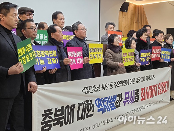 [아이뉴스24 이용민 기자] 대전·충남특별시에 지원될 정부의 행정 통합 인센티브와 관련한 ‘충북 역차별’에 대한 반발이 지방정부와 지방의회에 이어 민간으로 확산되고 있다.