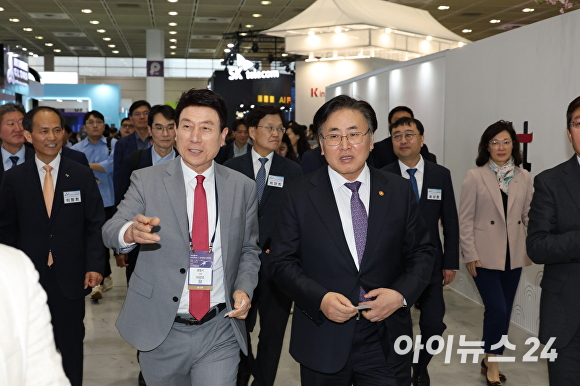 24일 행사장을 찾은 이강덕 포항시장은 유상임 과학기술정보통신부 장관, 행사 관계자들과 함께 포항 특별홍보관을 둘러보며 포항의 미래에너지 전략을 소개하고 관련 사업에 대한 정부 차원의 지원을 요청했다.